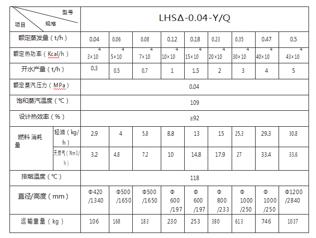 LHSΔ-0.04-Y/Q立式全自动燃油(气)汽水两用锅炉广泛适用于机关、学校、部队、医院、厂矿、食品、卫生等企 事业单位以及公寓别墅、宾馆饭店、写字楼等,可供热水、 开水,并具备蒸煮食品、消毒、取暖、淋浴、烘烤等多种用 途。锅炉采用微电脑技术,对水位、水温、压力表实行自动 测控;数码显示和触摸式面板,便于随时观察水温及设定参 数,操作简单准确;锅炉具有多种保护功能,使运行安全可 靠选配进口名牌燃烧机,低噪音,产汽快,燃料燃烧充 分,对环境无污染。符合GB13271-2014《锅炉大气污染物排放标准》,TSG G0002-2012《锅炉节能技术监督管 理规程》。